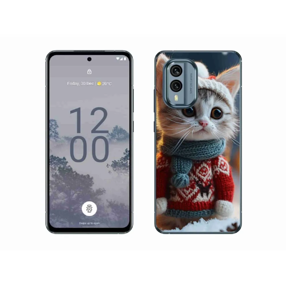 Rugalmas zselés tok mmCase a Nokia X30 5G képével - cica pulóverben