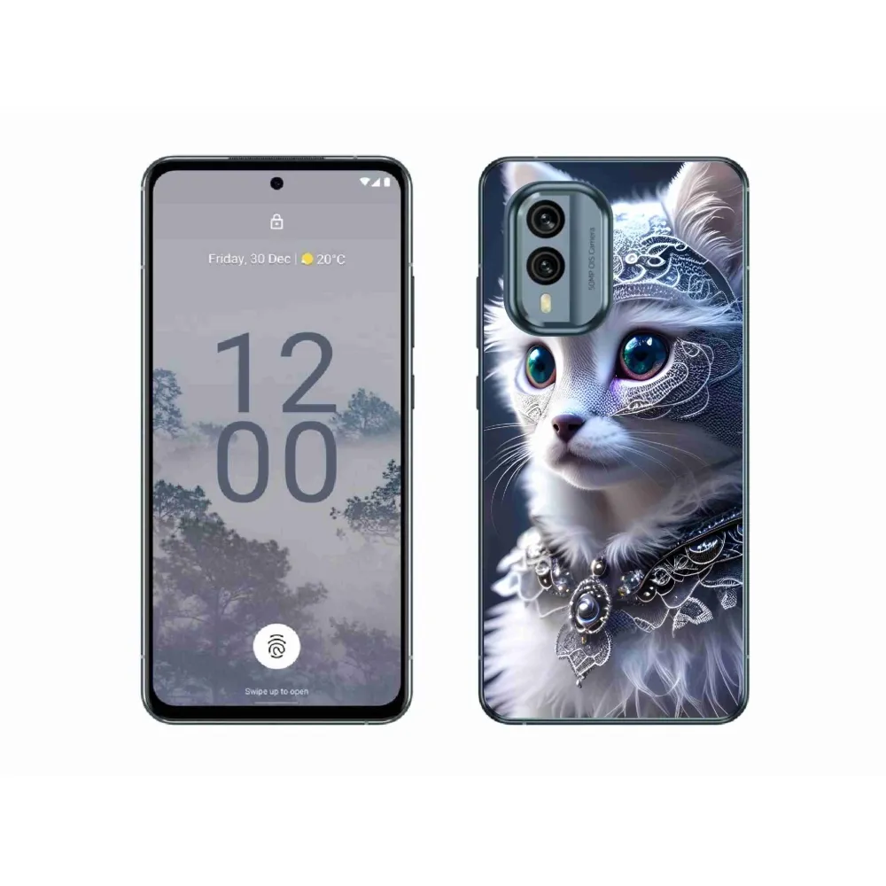 Rugalmas zselés tok mmCase a Nokia X30 5G képével - fehér macska