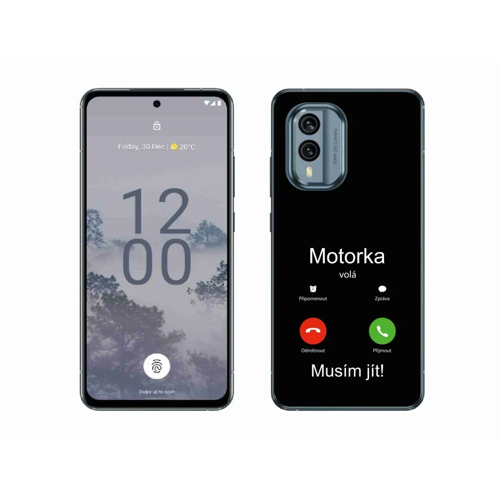 Rugalmas zselés tok mmCase a Nokia X30 5G képével - motoros hívás fekete háttérrel