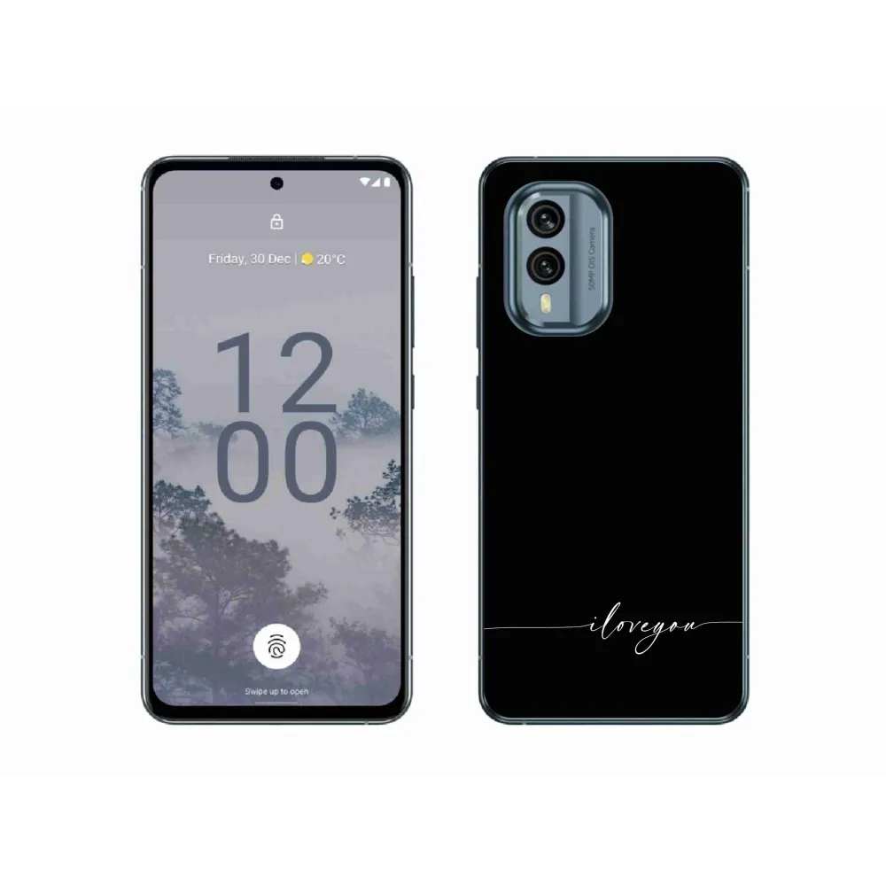 Rugalmas zselés tok mmCase a Nokia X30 5G képével - I love you fekete háttérrel
