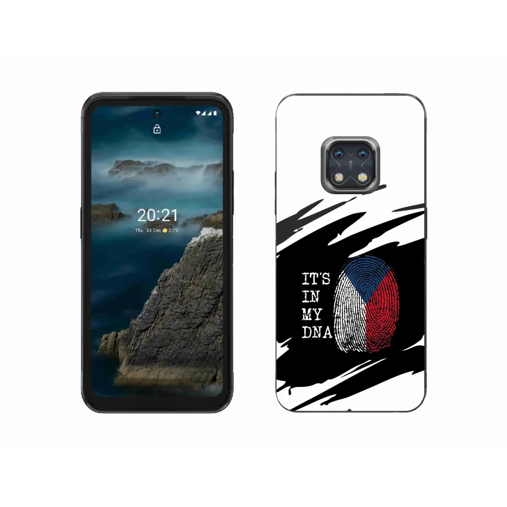 Rugalmas zselés tok mmCase a Nokia XR20 képével - zászlós ujjlenyomat fekete és fehér háttérrel