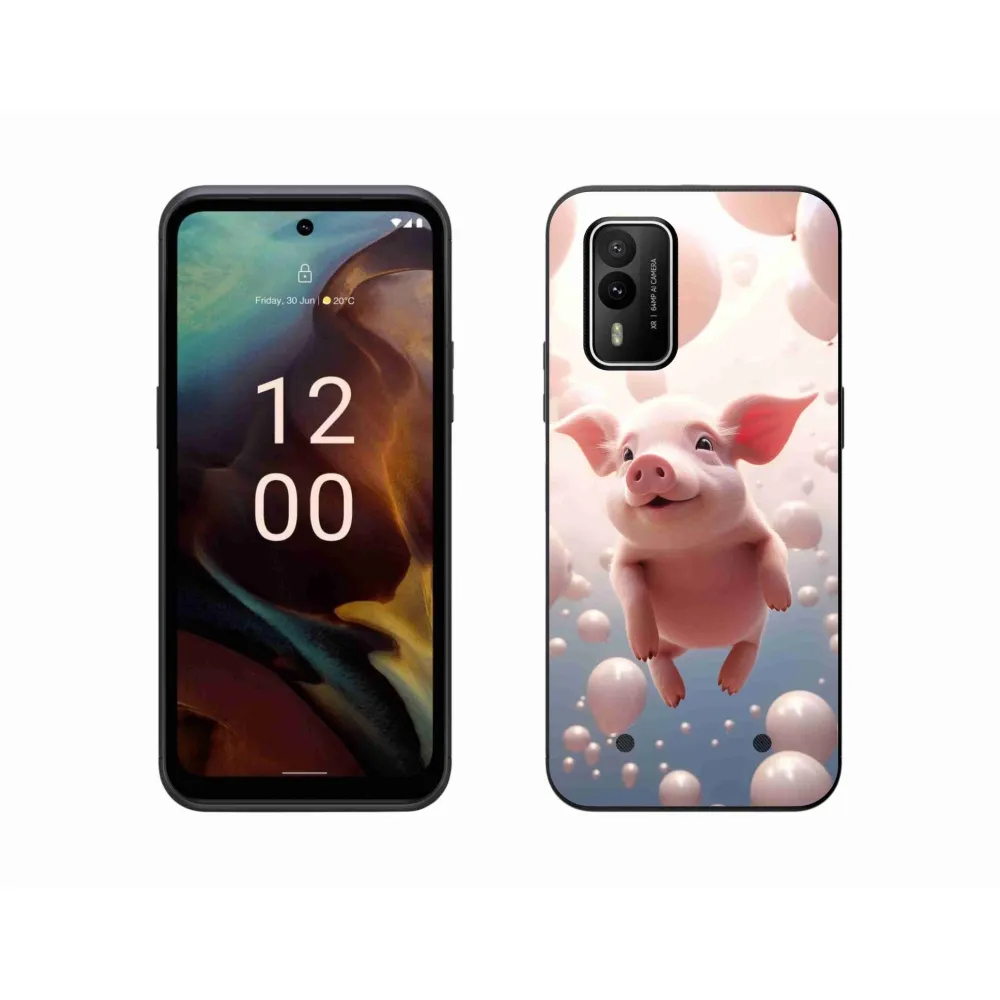 Rugalmas zselés tok mmCase képpel a Nokia XR21 készülékhez - malacka lufikkal