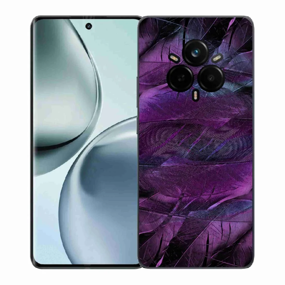 Rugalmas zselés tok mmCase képpel a Realme 14 Pro 5G számára - lila tollakkal