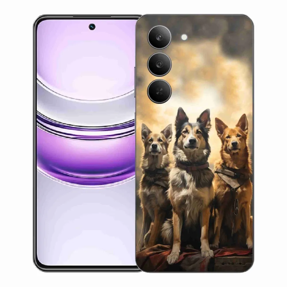 Rugalmas zselés tok mmCase képpel a Realme 14x 5G számára - három kutya
