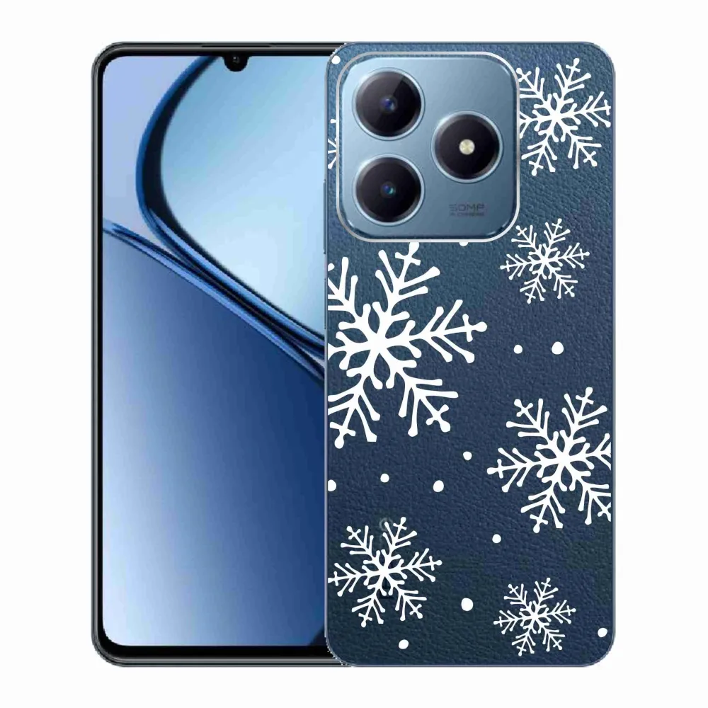 Rugalmas zselés borító mmCase a Realme C63 képével - fehér hópelyhek átlátszó háttéren