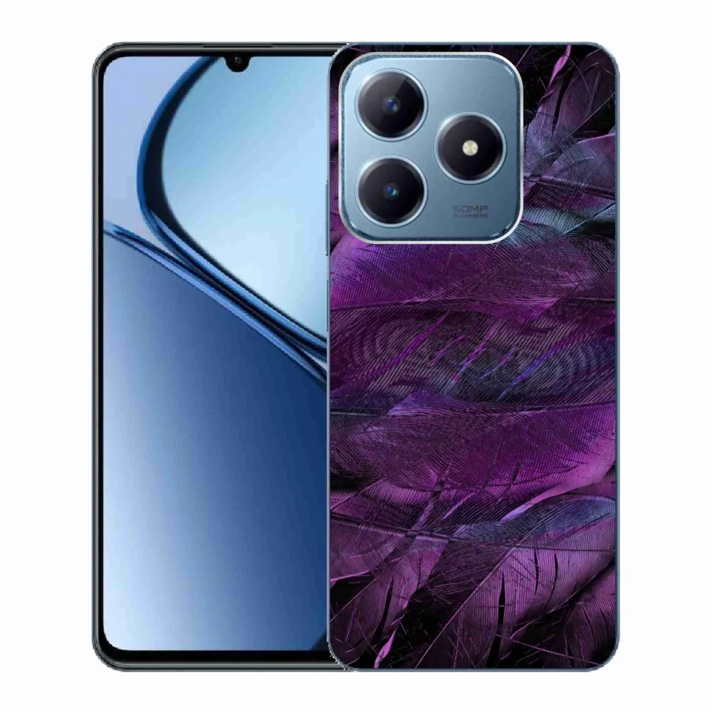 Rugalmas zselés borító mmCase képzeletbeli tok a Realme C63 készülékhez - lila tollakkal