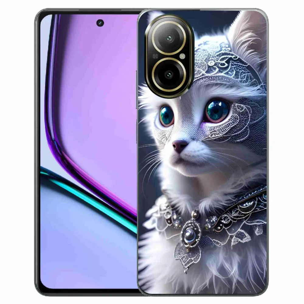 Rugalmas zselés tok mmCase képpel a Realme C67 készülékhez - fehér macska