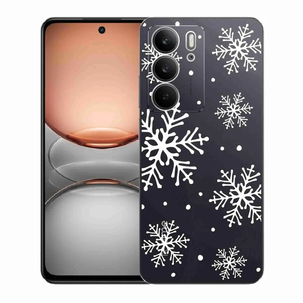 Rugalmas zselés tok mmCase képpel a Realme C75 készülékhez - fehér hópelyhek átlátszó háttéren