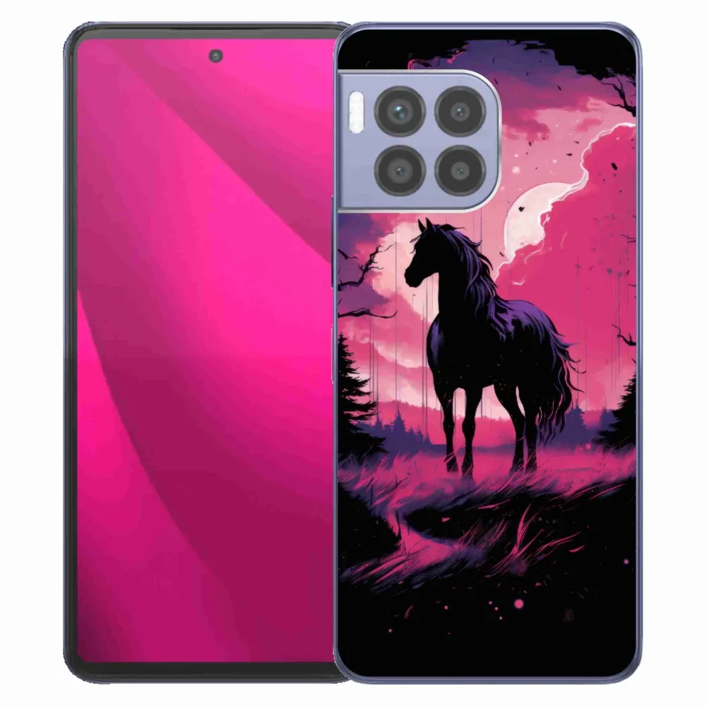 Rugalmas zselés tok mmCase képpel a T-Mobile T Phone 2 Pro telefonhoz - fekete rajzfilmes ló 1