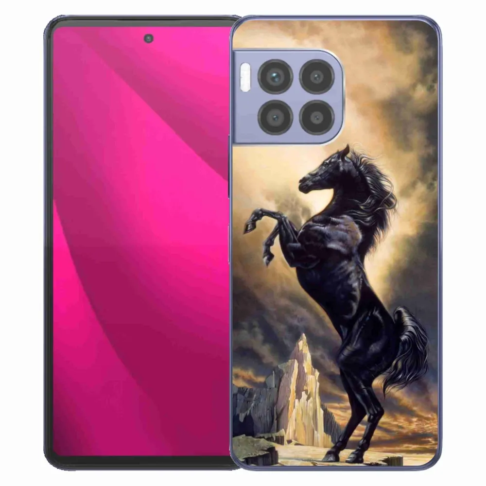 Rugalmas zselés tok mmCase képpel a T-Mobile T Phone 2 Pro telefonhoz - fekete rajzfilmes ló