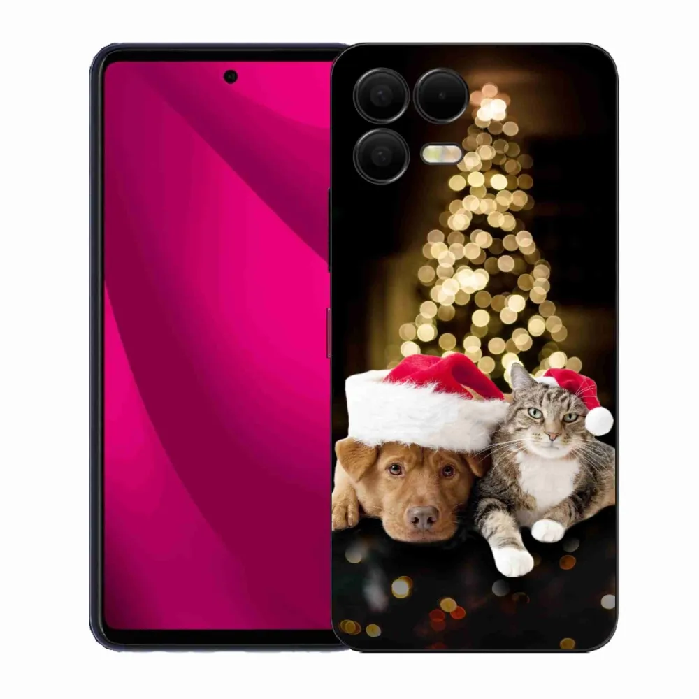 Rugalmas zselés tok mmCase képpel a T-Mobile T Phone 3 Pro telefonhoz - Karácsonyi kutya és macska
