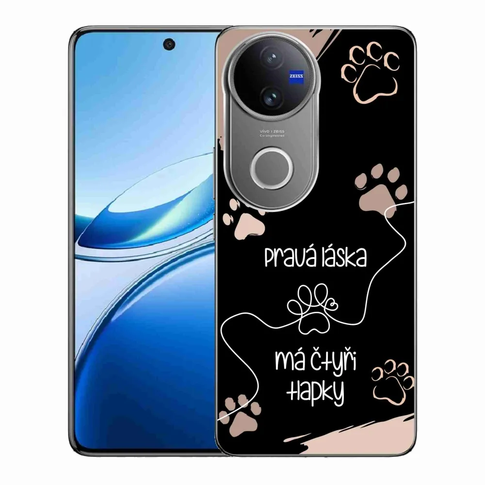 Rugalmas zselés tok mmCase a Vivo V50 5G képével - kutyamotívum 1 fekete háttérrel