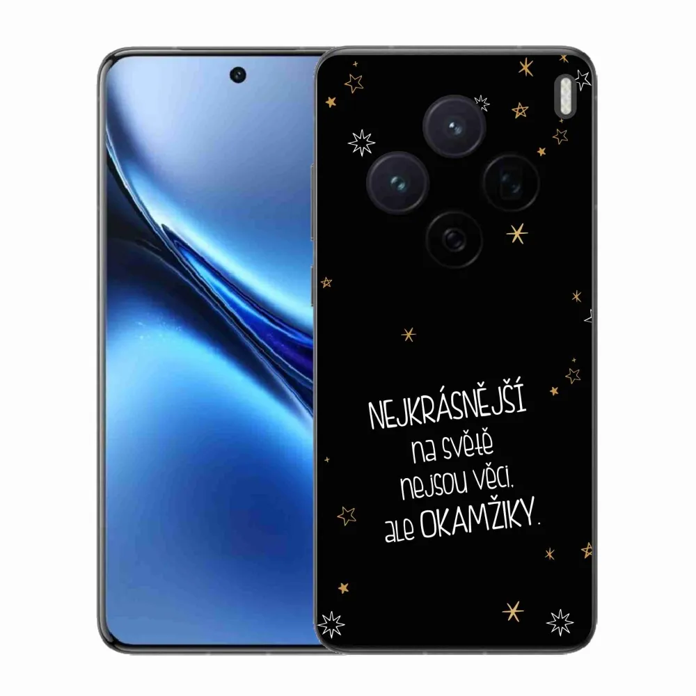 Rugalmas zselés tok mmCase a Vivo X200 5G képével - idézet 4 fekete háttérrel