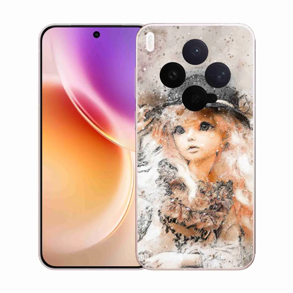 Rugalmas zselés tok mmCase képpel a Vivo X300-hoz - lány kalappal