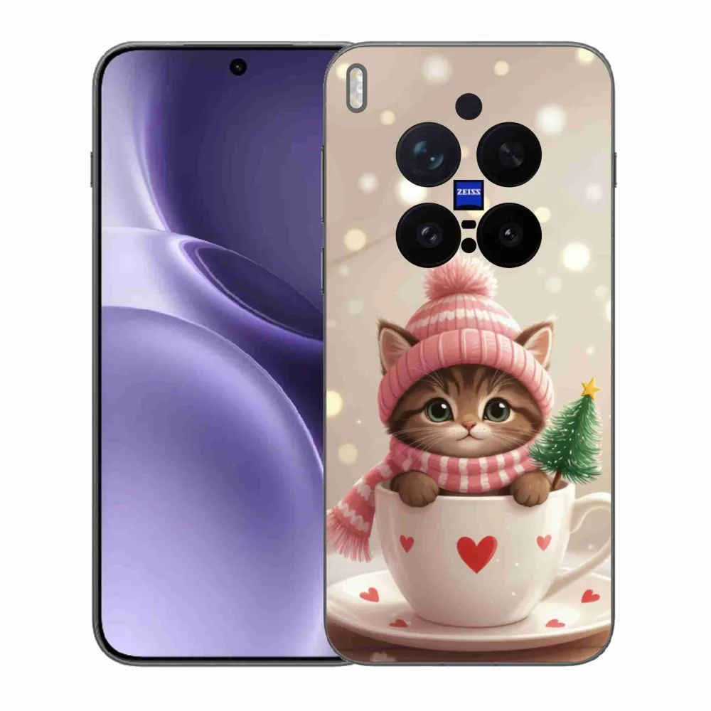 Rugalmas zselés tok mmCase képpel a Vivo X300 Pro 5G számára - Karácsonyi cica egy bögrében