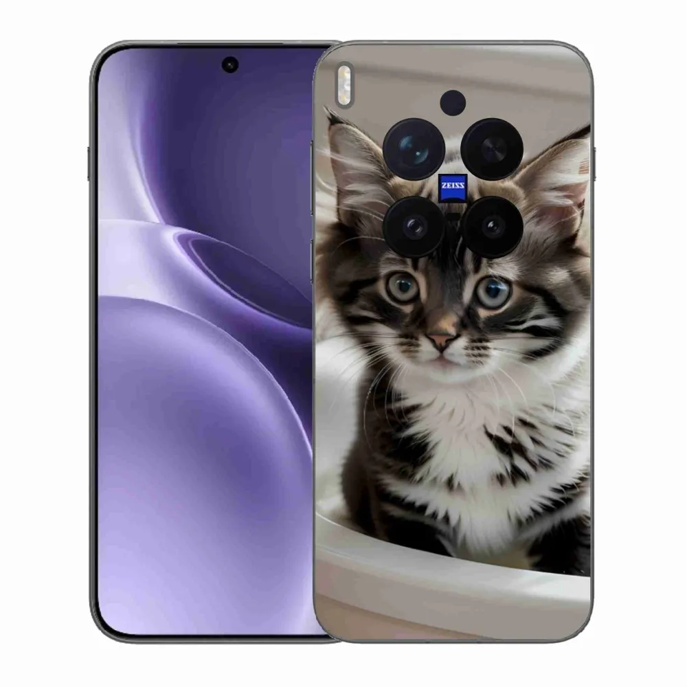 Rugalmas zselés tok mmCase képpel a Vivo X300 Pro 5G számára - kíváncsi cica