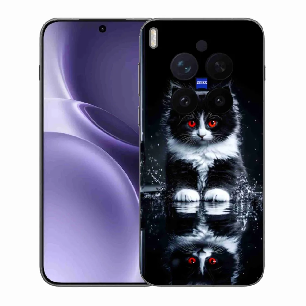 Rugalmas zselés tok mmCase a Vivo X300 Pro 5G képével - fekete-fehér cica