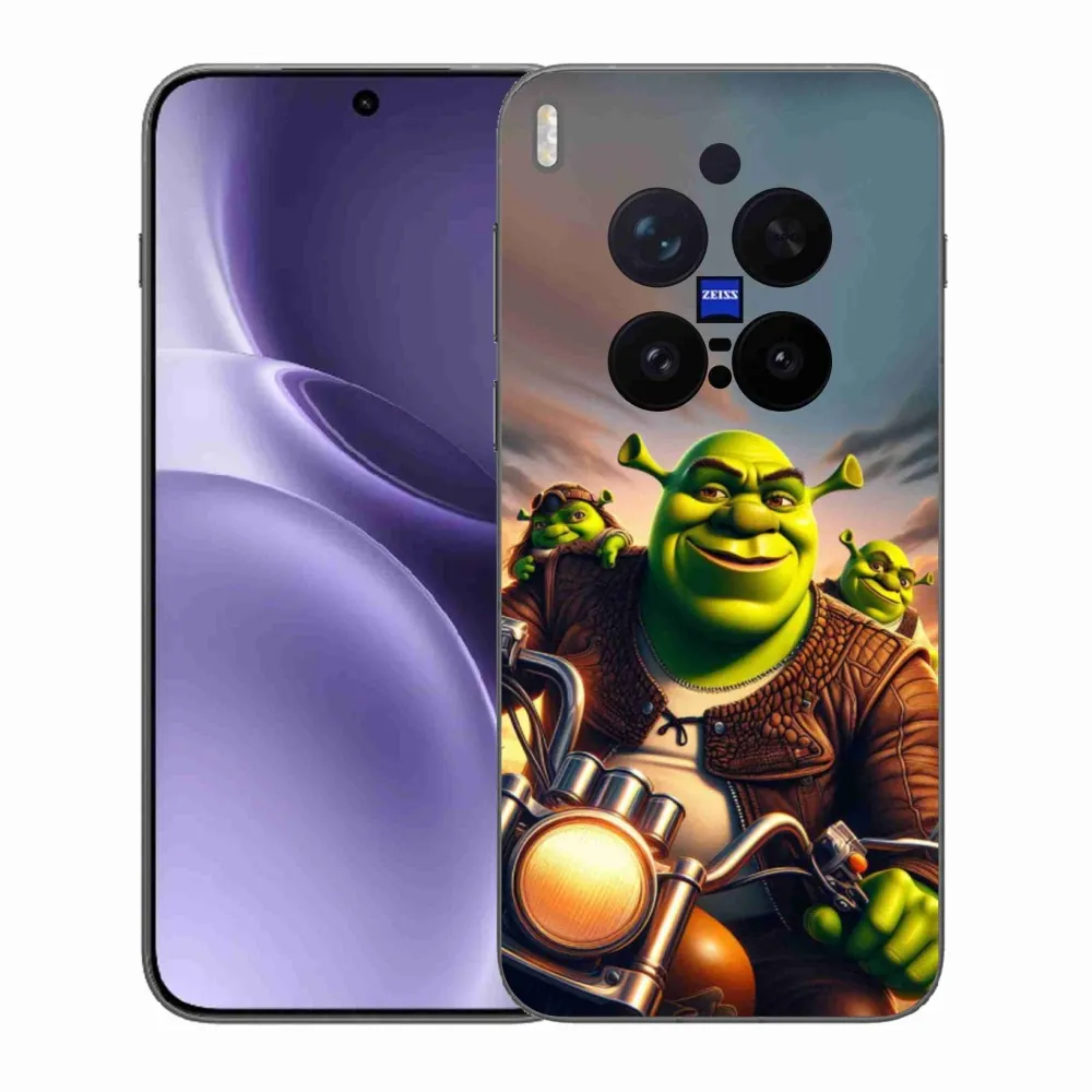 Rugalmas zselés tok mmCase képpel a Vivo X300 Pro számára - Shrek egy motorkerékpáron