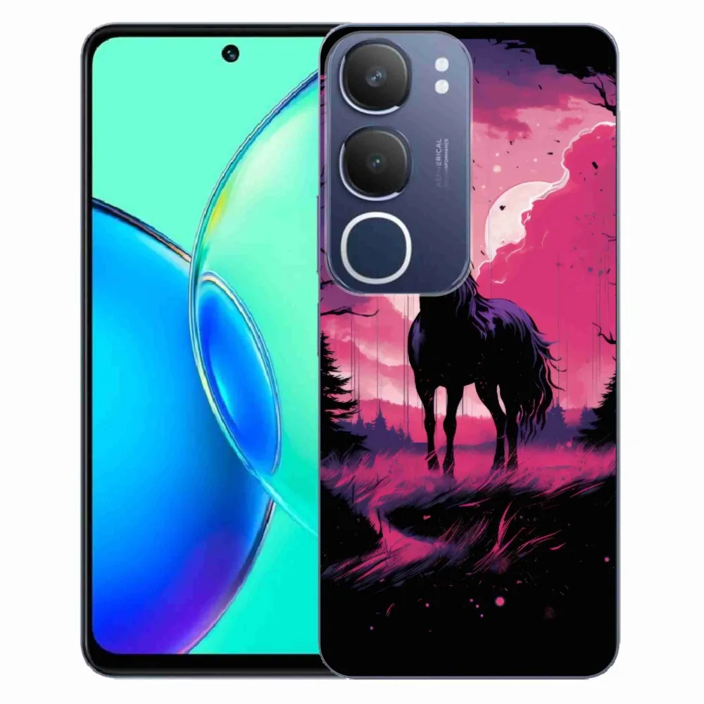 Rugalmas zselés tok mmCase képpel Vivo Y19s - fekete rajzfilm ló 1