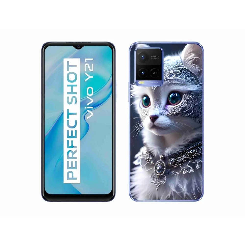 Rugalmas zselés tok mmCase képpel a Vivo Y21/Y21s/Y33s modellhez - fehér macska