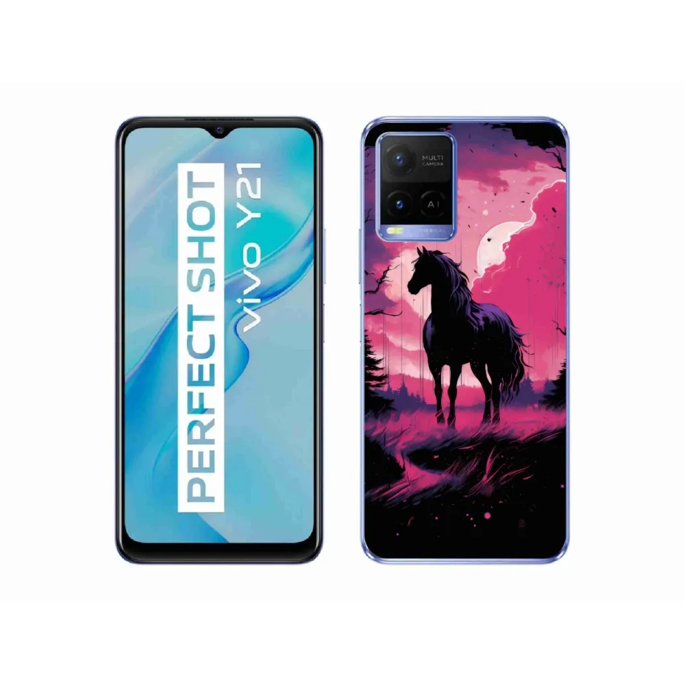 Rugalmas zselés tok mmCase képpel Vivo Y21/Y21s/Y33s - fekete rajzfilm ló 1