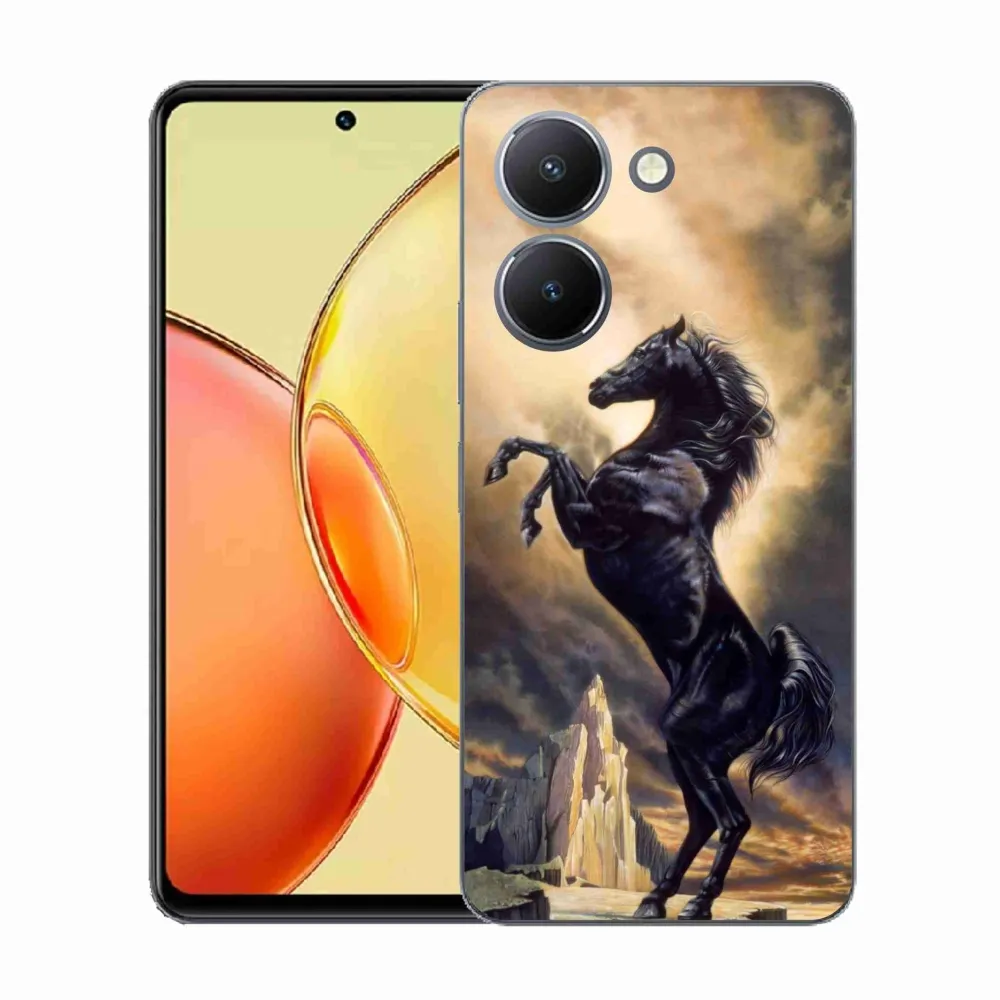 Rugalmas zselés tok mmCase a Vivo Y36 képével - fekete rajzfilm ló