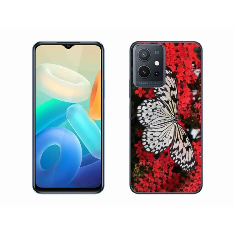 Zselés borítás mmCase a Vivo Y55 5G készülékhez - fekete-fehér pillangó 1