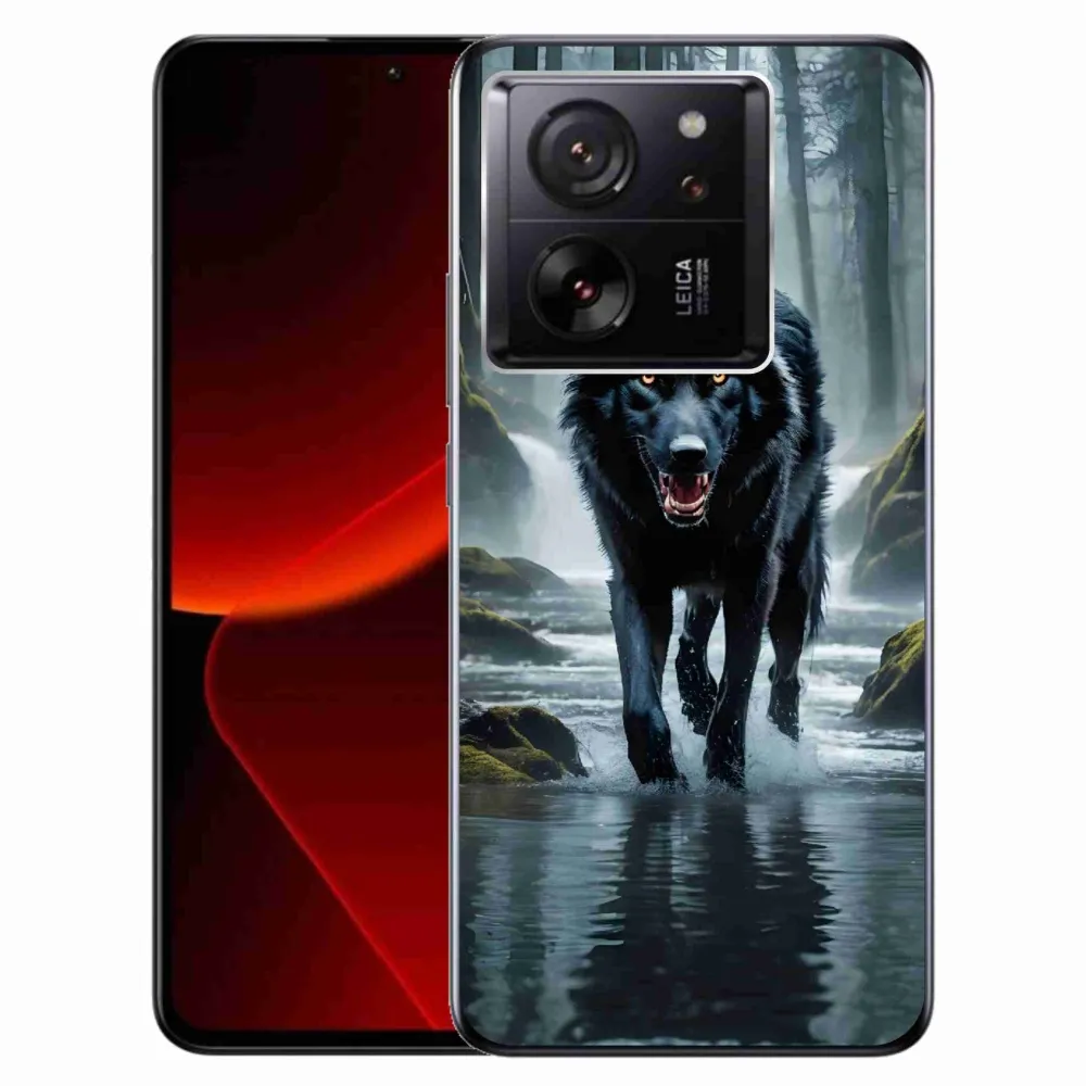 Rugalmas zselés tok mmCase képpel Xiaomi 13T/13T Pro - fekete farkas