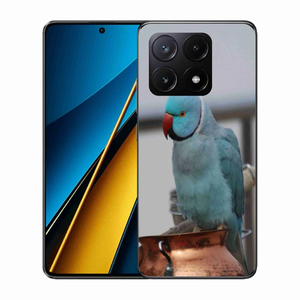 Rugalmas zselés tok mmCase a Xiaomi Poco X6 Pro 5G képével - papagáj alexander kék