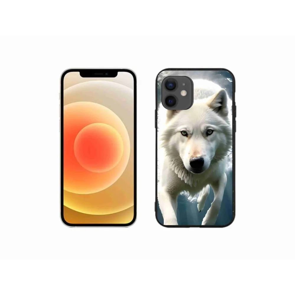 Rugalmas zselés tok mmCase képpel iPhone 12 mini készülékhez - fehér farkas