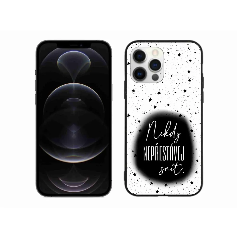 Rugalmas zselés tok mmCase képpel iPhone 12 Pro Max készülékhez - idézet 1 fekete és fehér háttérrel