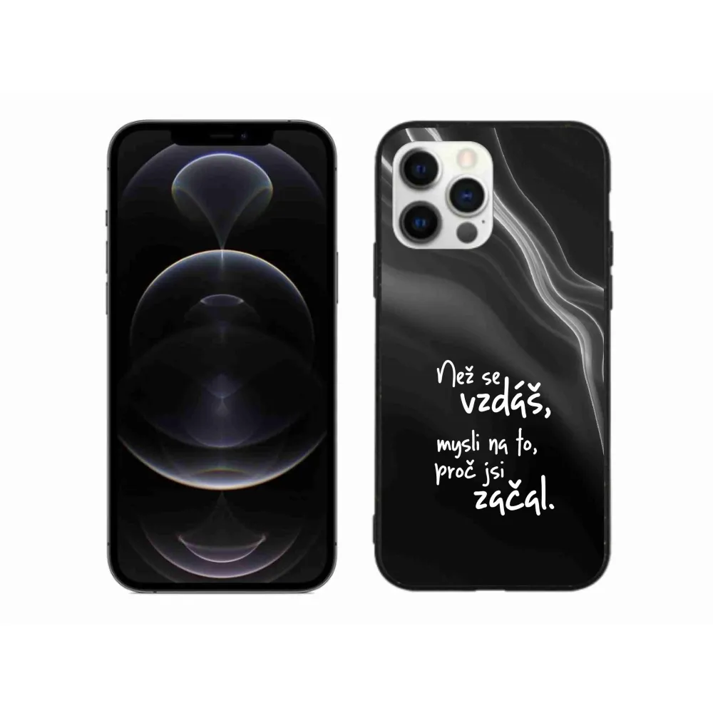 Rugalmas zselés tok mmCase képpel iPhone 12 Pro Max készülékhez - idézet 2 fekete háttérrel