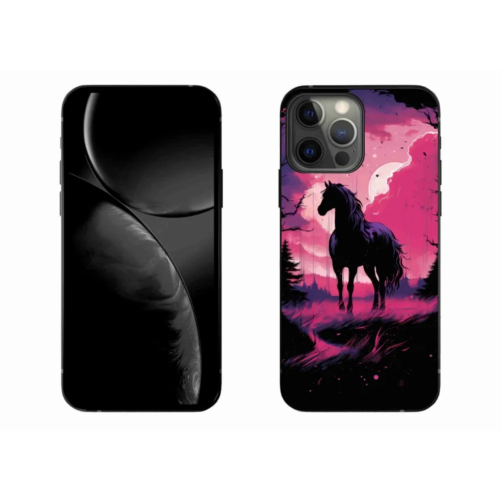 Rugalmas zselés tok mmCase képpel iPhone 13 Pro Max készülékhez - fekete rajzfilm ló 1