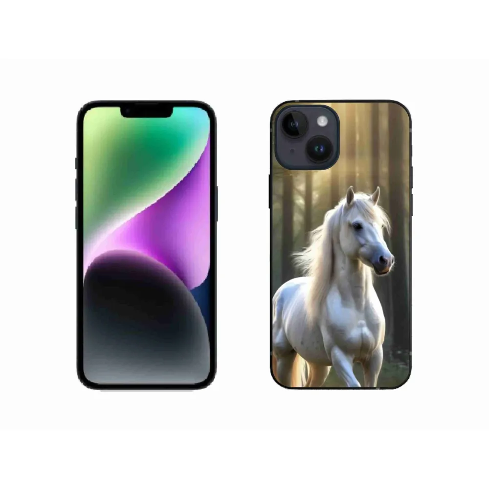 Rugalmas zselés tok mmCase képpel iPhone 14 készülékhez - fehér ló 3
