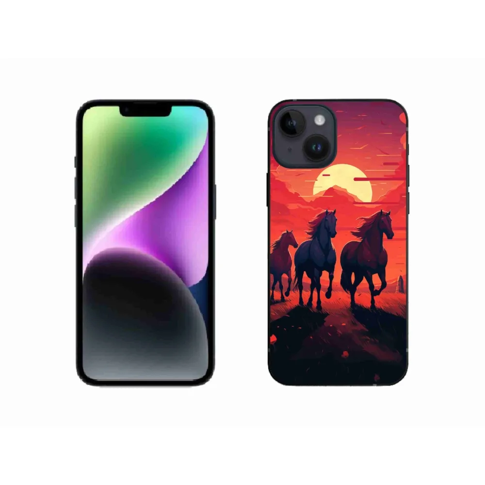 Zselés borítás mmCase iPhone 14 készülékhez - lovak és naplemente