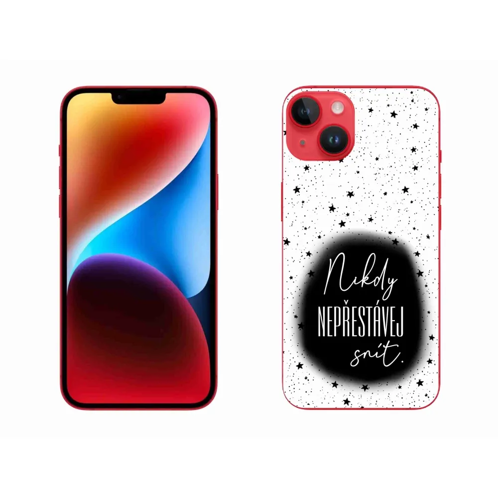 Rugalmas zselés tok mmCase képpel iPhone 14 Plus - idézet 1 fekete-fehér háttérrel