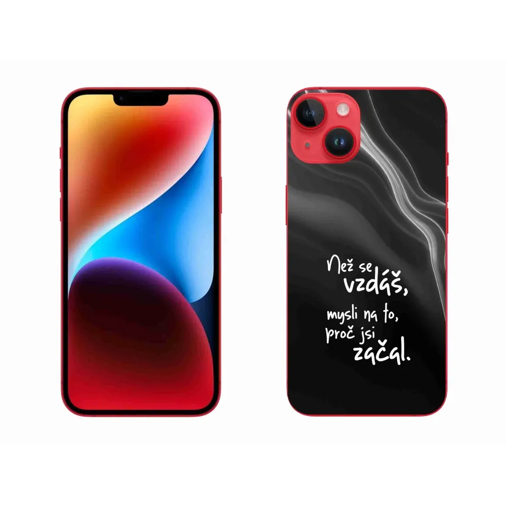Rugalmas zselés tok mmCase képpel iPhone 14 Plus készülékhez - idézet 2 fekete háttérrel