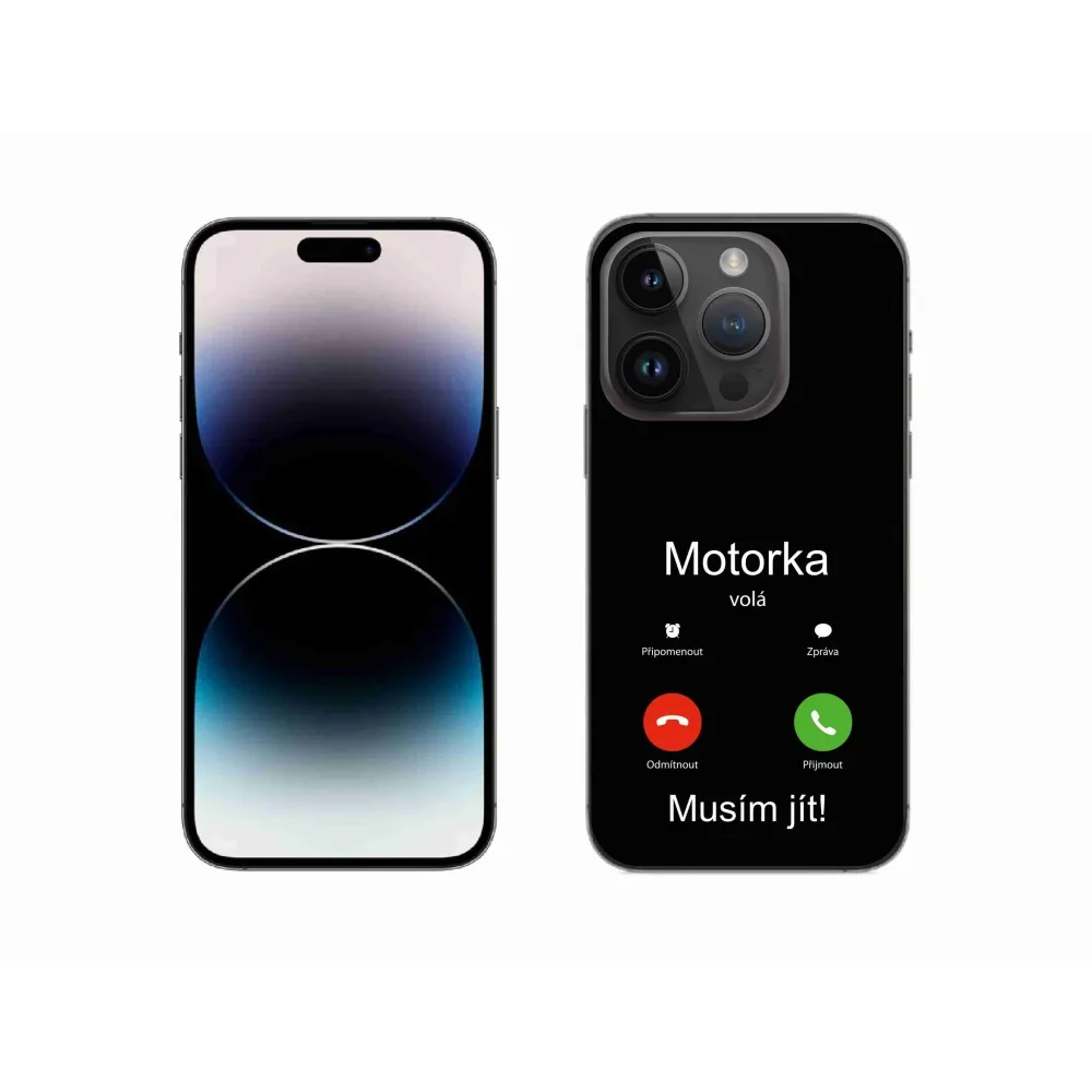 Rugalmas zselés tok mmCase képpel iPhone 14 Pro 6.1 - motoros hívás fekete háttérrel