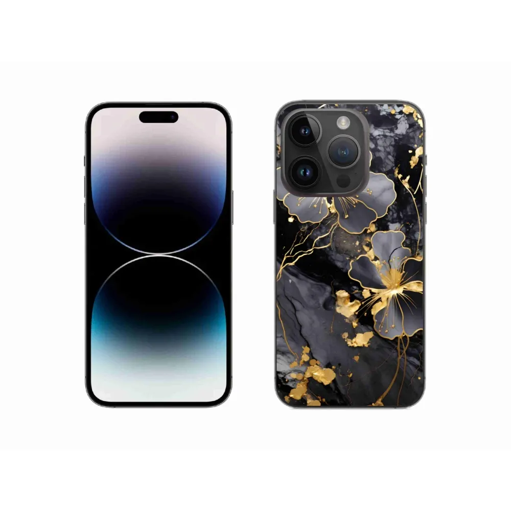 Zselés borítás mmCase iPhone 14 Pro készülékhez - arany virágok