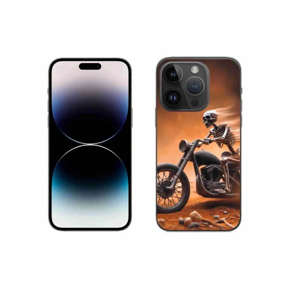 Rugalmas zselés tok mmCase képpel iPhone 14 Pro készülékhez - csontváz motorkerékpáron