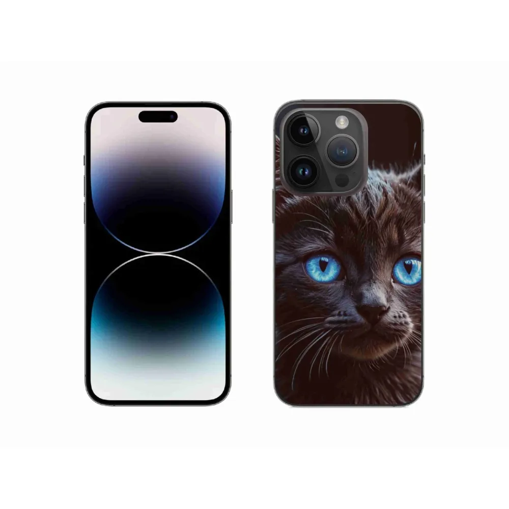 Rugalmas zselés tok mmCase képpel iPhone 14 Pro készülékhez - fekete cica 2