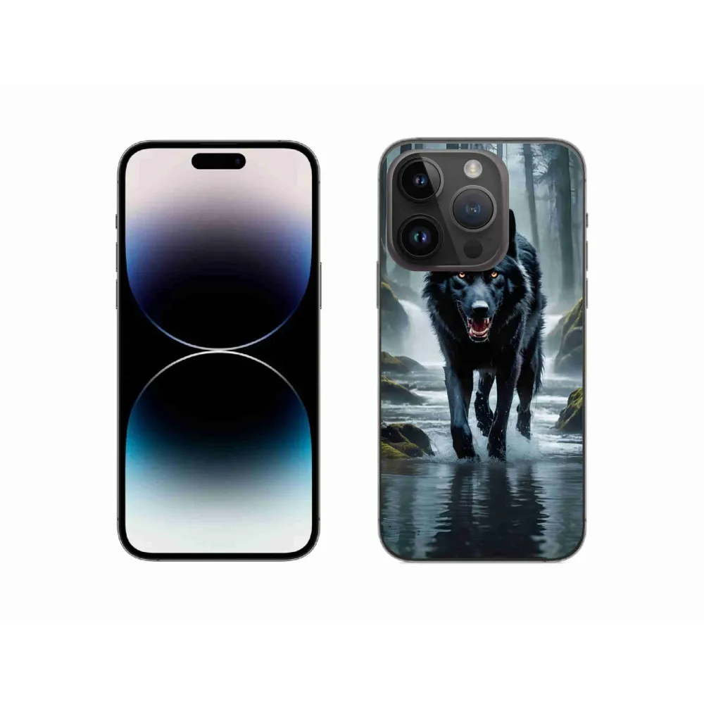 Rugalmas zselés tok mmCase képpel iPhone 14 Pro készülékhez - fekete farkas