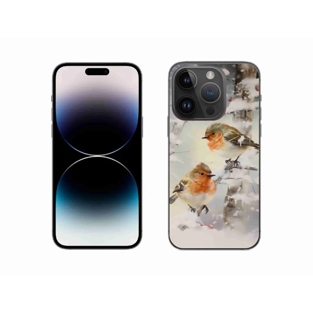 Rugalmas zselés tok mmCase képpel iPhone 14 Pro készülékhez - madarak télen
