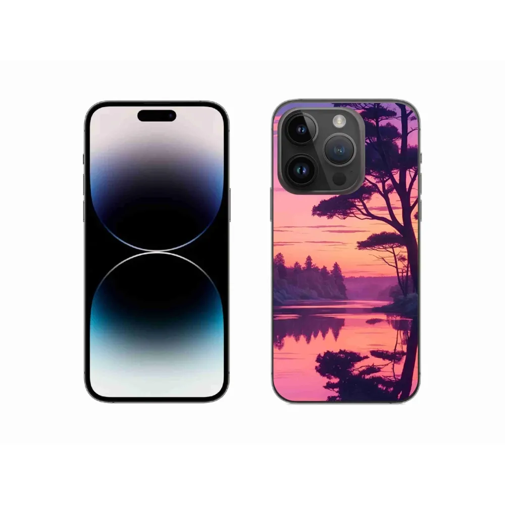 Rugalmas zselés tok mmCase képpel iPhone 14 Pro készülékhez - naplemente a tó felett