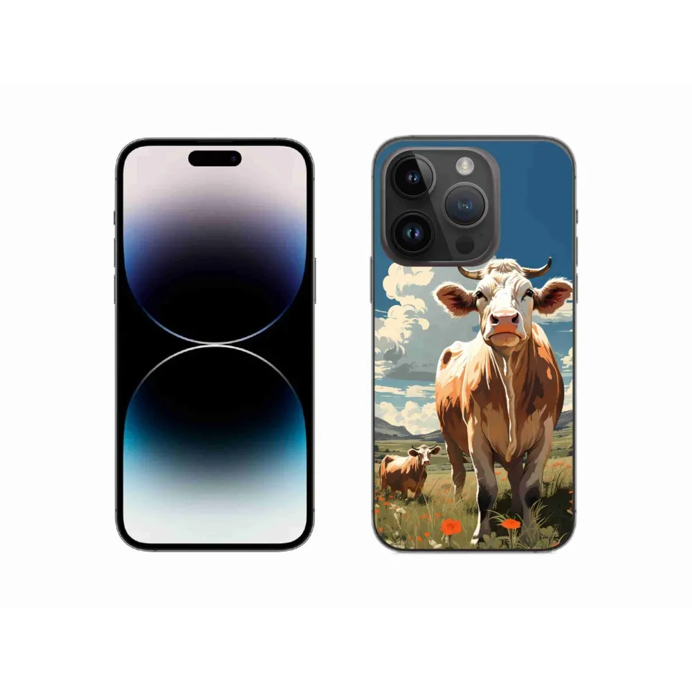 Zselés borítás mmCase iPhone 14 Pro készülékhez - tehenek a réten