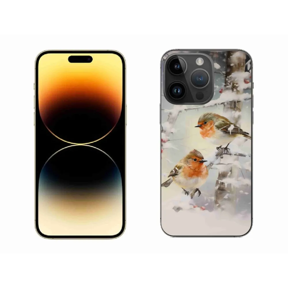Rugalmas zselés tok mmCase képpel iPhone 14 Pro Max készülékhez - madarak télen