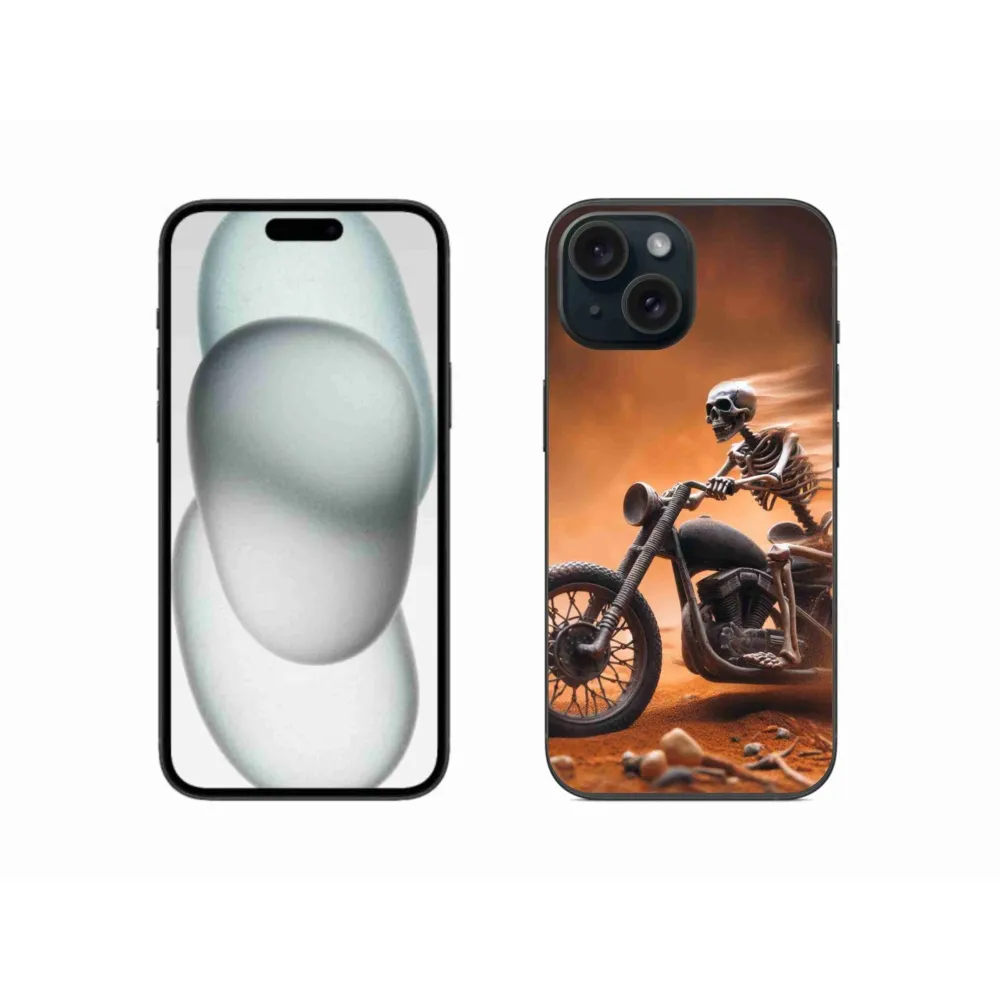 Zselés borítás mmCase iPhone 15 készülékhez - csontváz egy motorkerékpáron