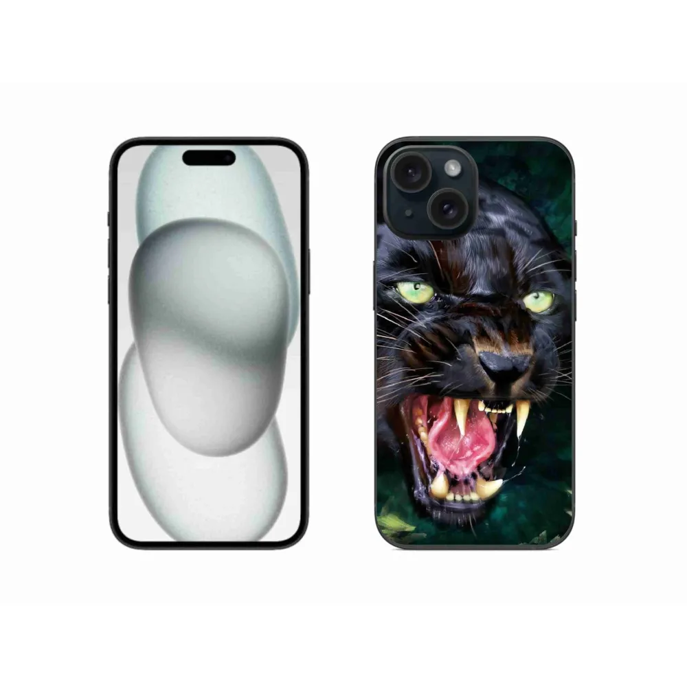 Rugalmas zselés tok mmCase képpel iPhone 15-hez - dühös fekete párduc