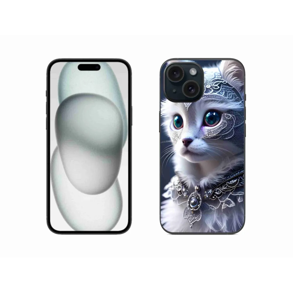 Rugalmas zselés tok mmCase képpel iPhone 15 készülékhez - fehér macska