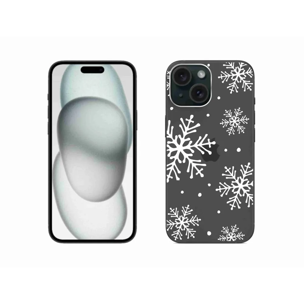 Zselés borítás mmCase iPhone 15 készülékhez - fehér pelyhek átlátszó háttéren